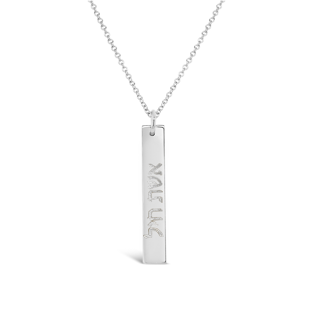 Perfect for everyday wear, our bestselling rectangle necklace, part of the Erica Sara Hebrew collection, is customized with engraving in the Hebrew language. A meaningful name, word, initial or blessing are all popular ideas.